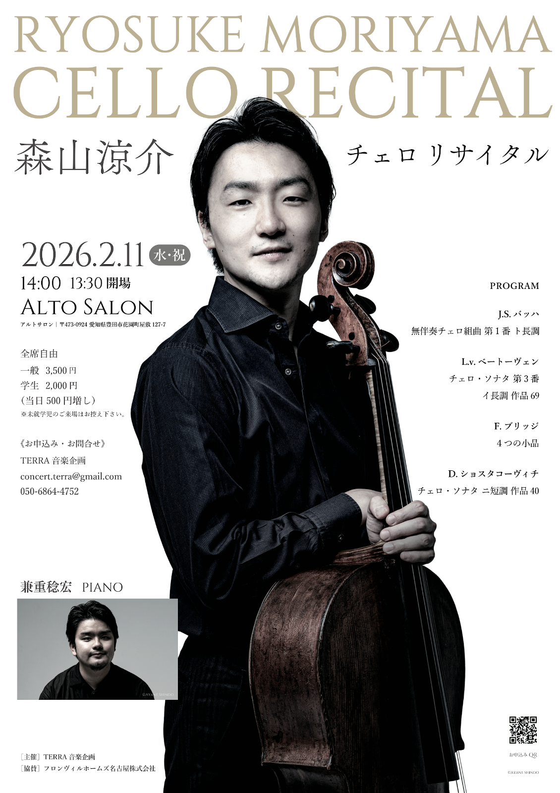 【2026.2.11 (水: 建国記念日) 14:00】森山涼介 チェロ・リサイタル 〜ショスタコーヴィチ、 ベートーヴェン チェロソナタ ほか