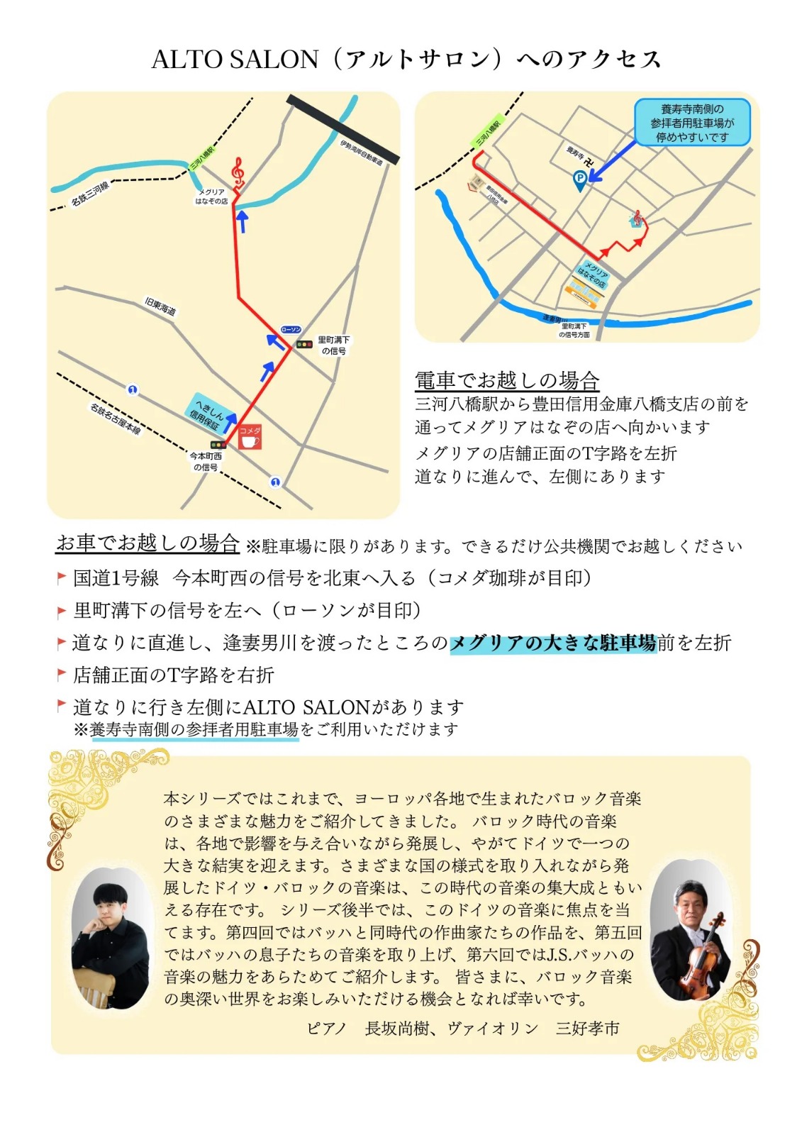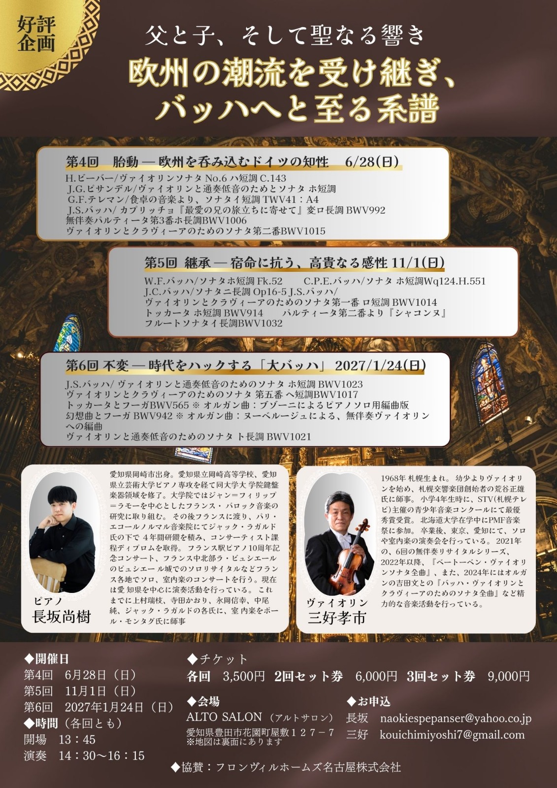 【2026.6.28 (日) 14:30】第4回. 父と子、そして聖なる響き:欧州の潮流を受け継ぎ、バッハへと至る系譜 Vn三好孝市+Pf長坂尚樹
