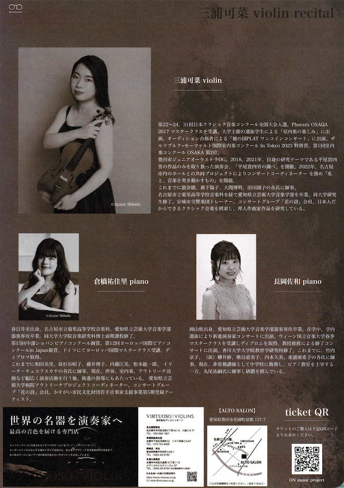 【2026.5.10 (日) 14:00】OMP 三浦可菜 ヴァイオリン リサイタル
